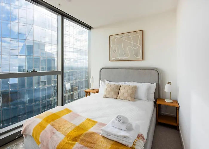 Diese 69 m² großen Apartments liegt im Viertel Melbourne CBD, in ungefähr 10 Fahrminuten Entfernung von der Eureka Skydeck 88 Aussichtsplattform. Birrarung Marr Park liegt rund 2,1 km entfernt und Festival Hall ist vom Apartment aus zu Fuß zu erreichen.